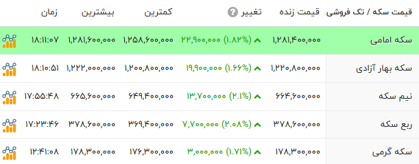 قیمت طلا و انواع سکه را در جدول زیر مشاهده میکنید.