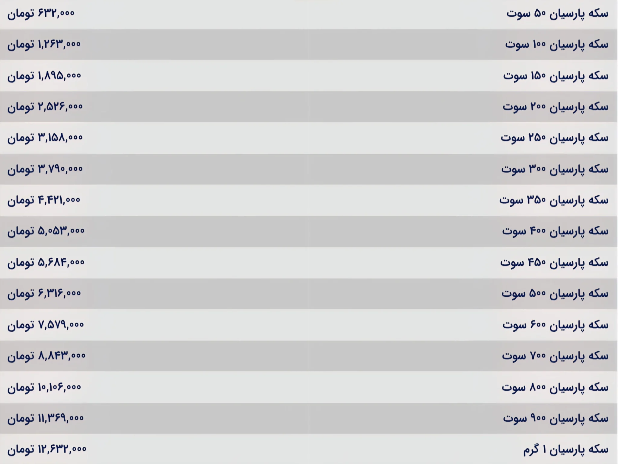 قیمت سکه پارسیان امروز چهارشنبه ۱۹ آذر ۱۴۰۴ روی رقم ۱۲ میلیون و ۶۳۲ هزار تومان برای هر گرم قرار گرفت. همچنین، قیمت سکه پارسیان ۵۰ سوت با رقم ۶۳۲ هزار تومان به ثبت رسید.