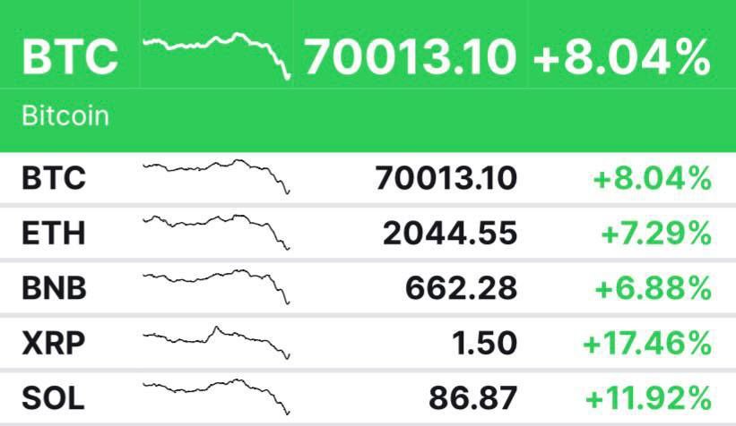 پس از ریزش شدید قیمت‌ها طی روزهای گذشته، امروز بیت‌کوین دوباره به کانال 70 هزار دلار بازگشت.