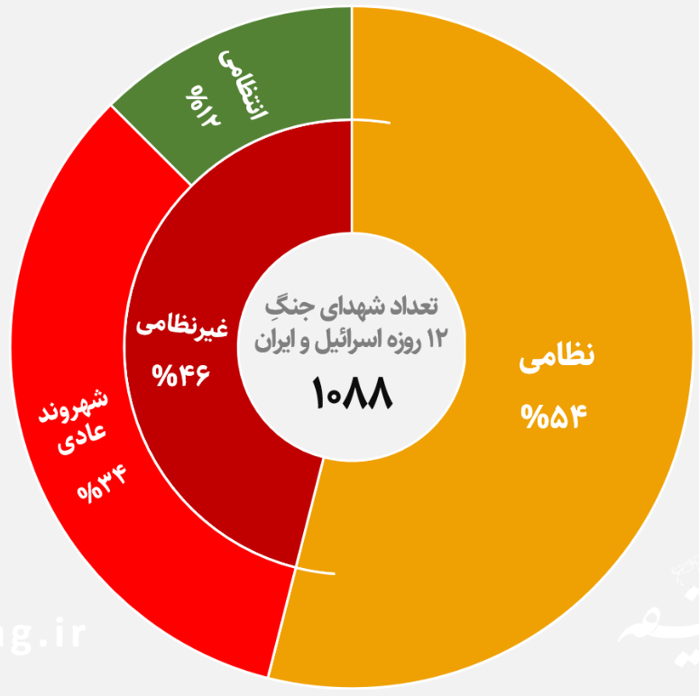 در جنگ ۸ ساله عراق و ایران، حدود ۱۰% از شهدا را شهروندان عادی تشکیل میدادند. در جنگ ۱۲ روزه اسرائیل و ایران، علیرغم استفاده از فناوریهای پیشرفته این آمار تقریبا سه برابر شده و به ۳۱٪ رسیده است.