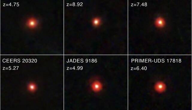 عکسهای جیمز وب، ۶ نقطه قرمز کوچک تقریباً بدون ویژگی را نشان میدهند. این نقطهها در برنامه جیمز وب که آنها را پیدا کرده است، فهرست شدهاند. علاوه بر این، جستوجوهایی در جهان نزدیک ما در حال انجام شدن است تا مشخص شود که هر نقطه قرمز کوچک قبلی ممکن است امروز به چه چیزی تبدیل شده باشد.