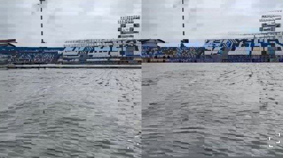 تصاویری که باشگاه خیبر ساعتی قبل از زمین منشتر کرد، نشان میدهد که زمین ورزشگاه سیروس قایقران همچنان با کاورها پوشیده شده و عوامل اجرایی در حال جمعآوری آنها هستند تا شرایط چمن مورد ارزیابی قرار گیرد.