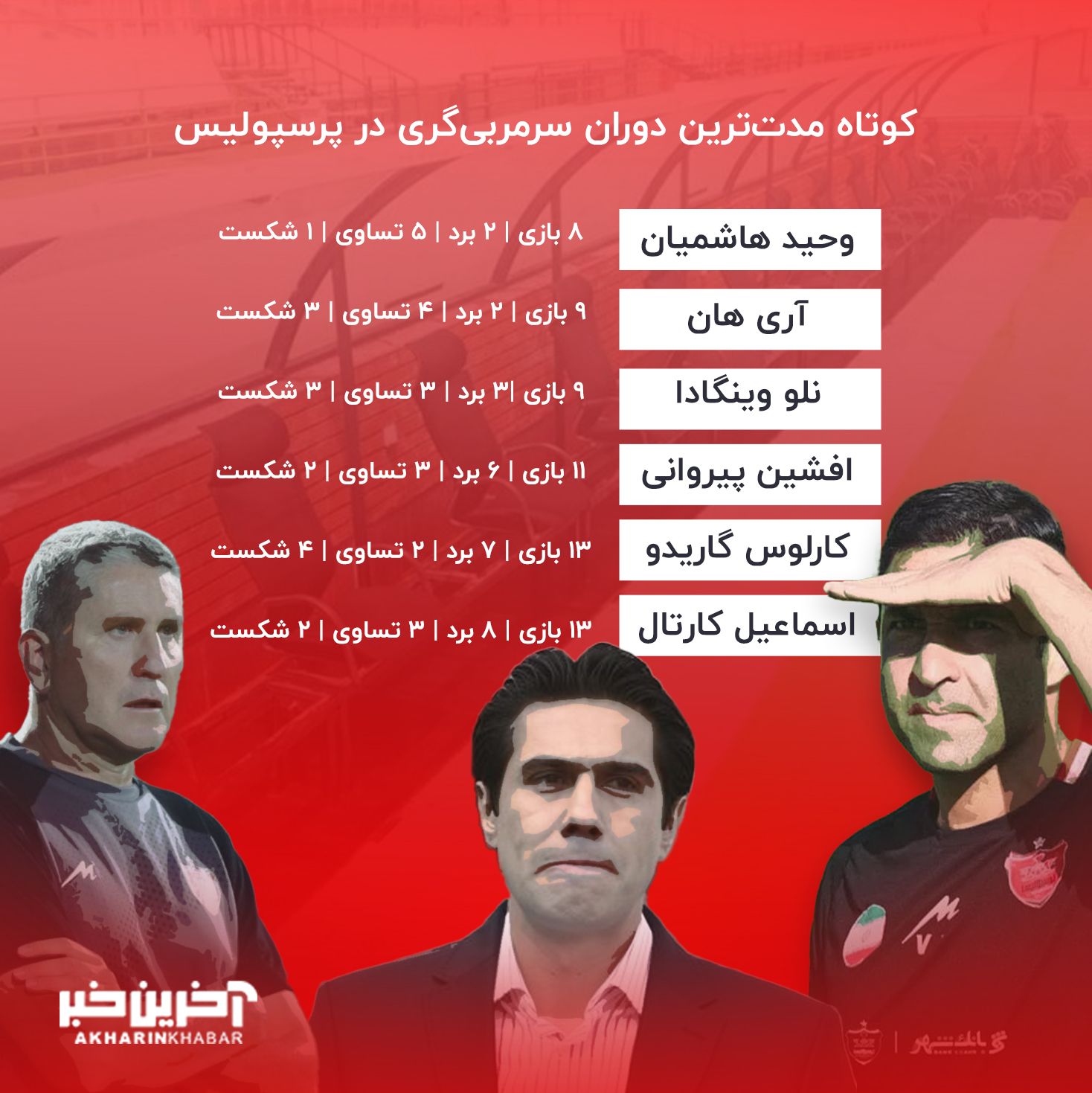اینفوگرافیک کوتاه مدتترین دوران سرمربیگری روی نیمکت پرسپولیس: