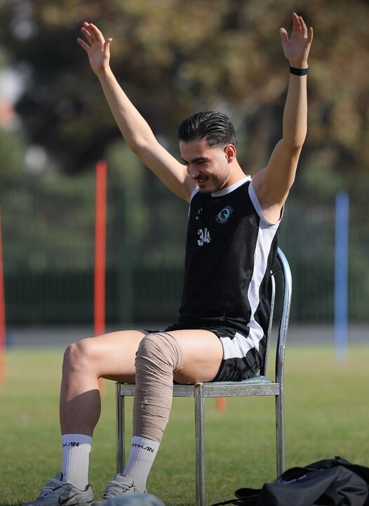 مهر/مهاجم جوان تیم فوتبال پیکان تهران در محل تمرینات این تیم حاضر شد.