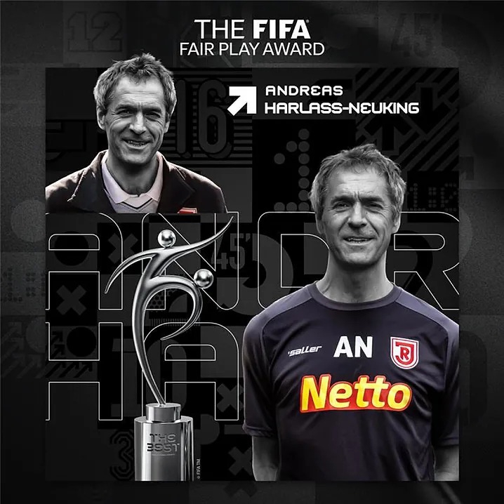 دکتر آندریاس هارلاس-نویکینگ، پزشک باسابقه تیم یان رگنسبورگ، پس از نجات جان یک هوادار در جریان دیداری از بوندسلیگای دو آلمان، با اقدامی سریع و حیاتی، شایسته دریافت جایزه بازی جوانمردانه فیفا ۲۰۲۵ شناخته شد شد. جایزهای به پاسداشت رفتاری انسانی و مثالزدنی.