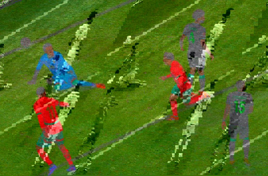 سرانجام فشارهای مراکش در دقیقه ۵۵ به نتیجه رسید. نصیر مزراوی با پاسی دقیق توپ را به براهیم دیاز رساند و ستاره رئال مادرید با ضربهای زمینی و حسابشده از مرکز محوطه جریمه، توپ را به گوشه پایین دروازه فرستاد تا مراکش ۱-۰ پیش بیفتد.