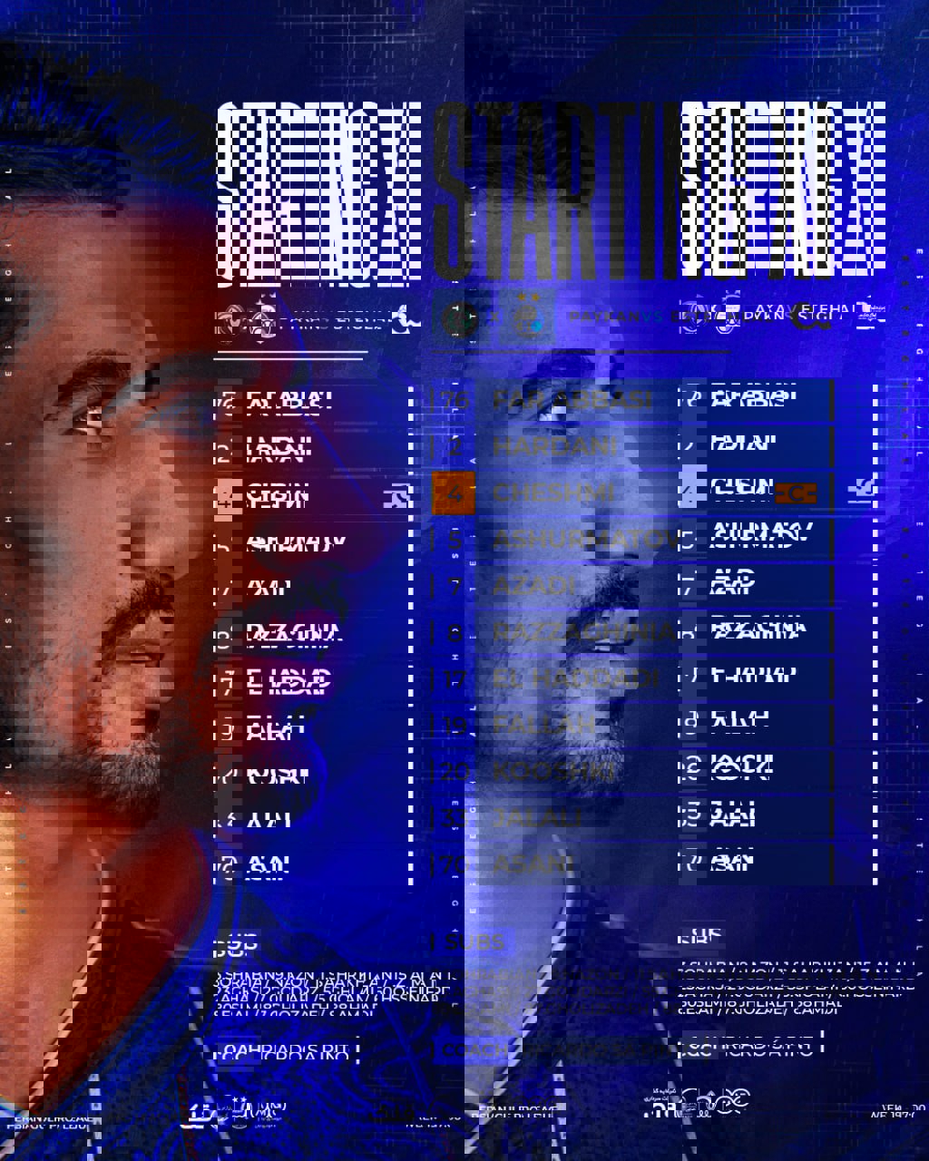 حبیب فرعباسی، صالح حردانی، روزبه چشمی، رستم آشورماتوف، سامان فلاح، ابوالفضل جلالی، امیرمحمد رزاقینیا، منیر الحدادی، علیرضا کوشکی، یاسر آسانی، محمدرضا آزادی