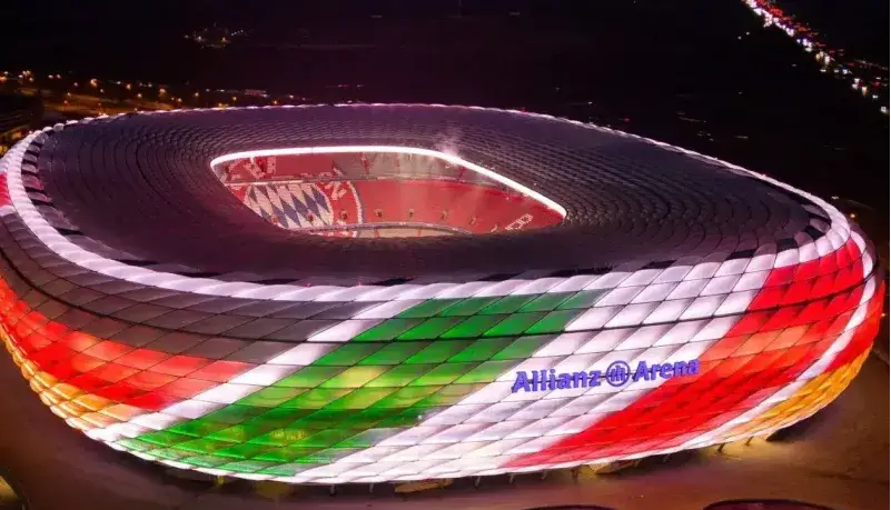 در آستانه آغاز بازیهای المپیک زمستانی ۲۰۲۶، ورزشگاه آلیانتس آرنا، خانه باشگاه بایرن مونیخ، با نورپردازی خیرهکننده به رنگ پرچمهای آلمان و ایتالیا درآمد. این اقدام نمادین به مناسبت میزبانی مشترک میلان و کورتینا دامپتزو از این دوره از رقابتهای المپیک انجام شده است.
