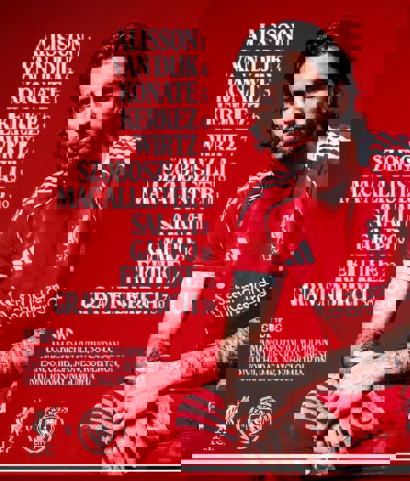 ترکیب لیورپول: آلیسون، سوبوسلای، کوناته، فندایک، کرکز، گراونبرخ، مکآلیستر، صلاح، ویرتز، خاکپو، اکیتیکه