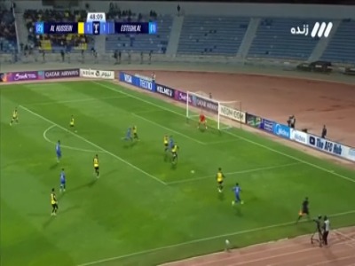 دقیقه 75: توپگیری مهاجم الحسین لحظاتی نفس گیر خلق کرد چرا که او را در موقعیت تک به تک قرار میداد اما حبیب فرعباسی با خروج به موقع از محوطه جریمه توپ را به اوت فرستاد.