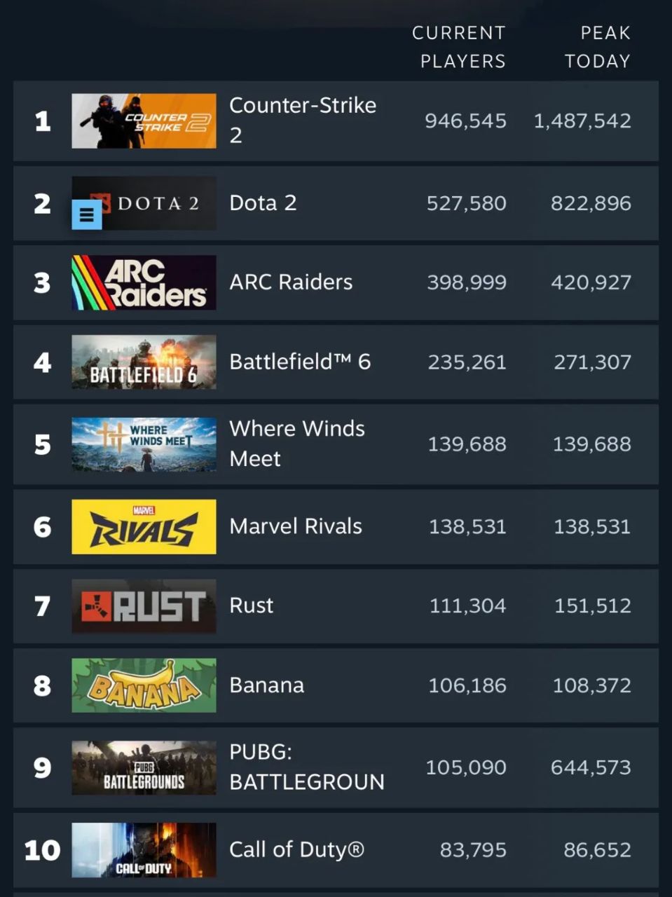 در ادامه، آمار دقیق تعداد بازیکنان همزمان ۱۰ بازی محبوب استیم را در شب عرضه Black Ops 7 میبینید: