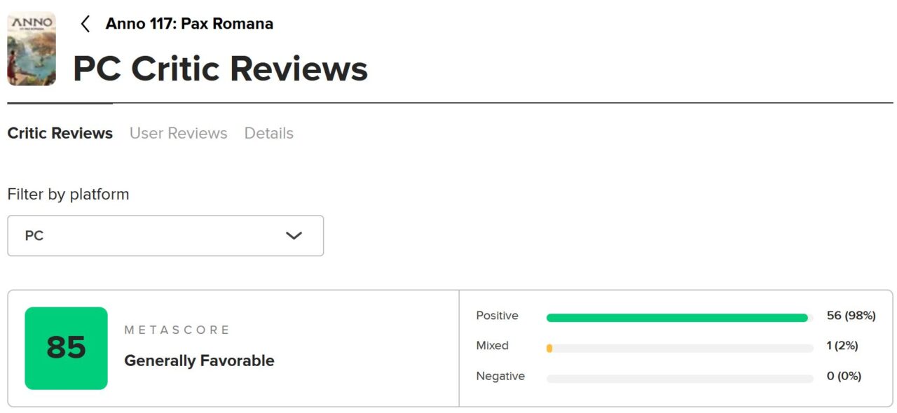 گیم فا/نقدها و نمرات بازی Anno 117: Pax Romana در حال انتشار هستند. با بخش نتیجهگیری برخی از بررسیها همراه باشید.