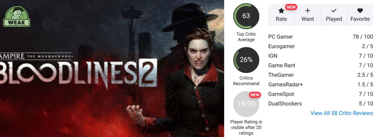 گیم فا/نقدها و نمرات بازی Vampire: The Masquerade – Bloodlines 2 در حال انتشار هستند. با بخش نتیجهگیری برخی از بررسیها همراه باشید.