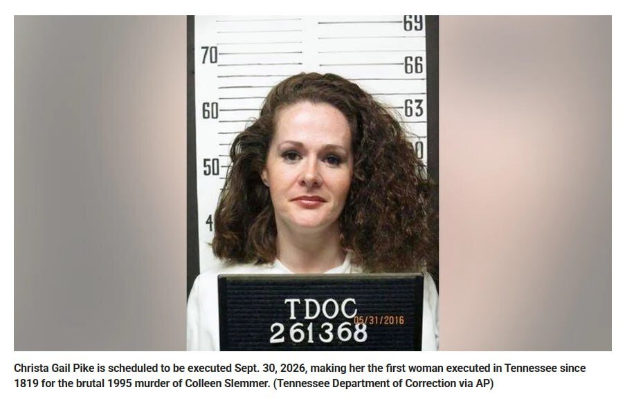 کریستا گِیل پایک، ۴۹ ساله، که در زمان ارتکاب جرم ۱۸ ساله بود و متهم به شکنجه و قتل کولین اسلِمرِ ۱۹ ساله در ناکسویل شده است، طبق اسناد دولتی برای اجرای حکم در ۳۰ سپتامبر ۲۰۲۶ برنامهریزی شده است. اگر حکم اجرا شود، این نخستین اعدام یک زن در ایالت تنسی از سال ۱۸۲۰ خواهد بود