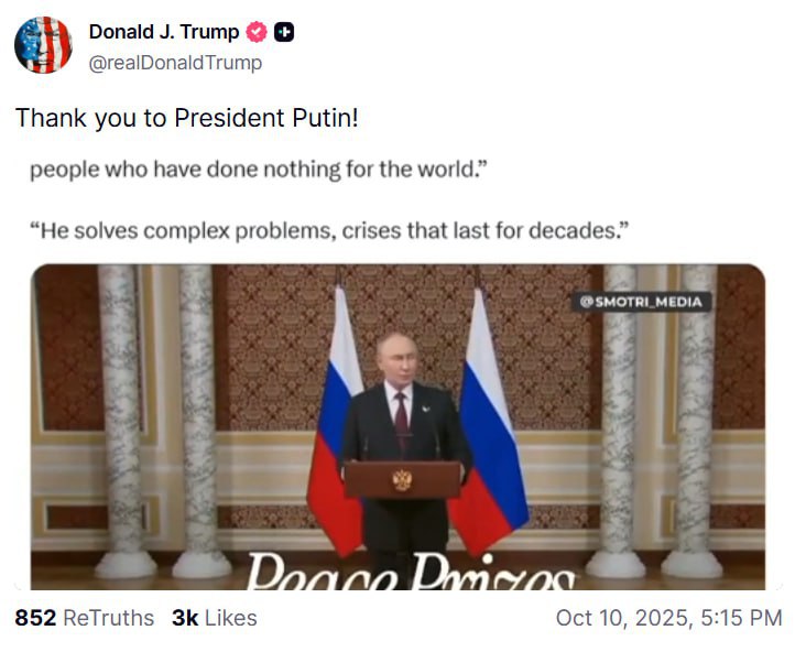 جهان نما/ پوتین گفته بود این جایزه اغلب به «افرادی که برای جهان کاری نکردهاند» داده میشود و اعتبار این جایزه تا حد زیادی از بین رفته است.