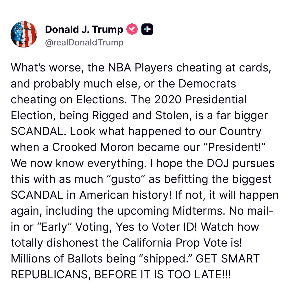 ترامپ همچنین خواستار اقدام جدی وزارت دادگستری آمریکا (DOJ) برای پیگیری موضوع شد و هشدار داد: اگر این مسئله حل نشود، در انتخابات میاندورهای و سایر انتخابات هم تکرار خواهد شد.
