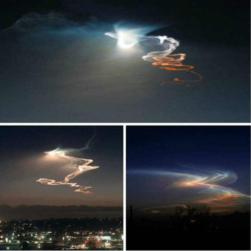 طبق گزارشها، مردم محلی «ردپاهای مارپیچی و دودهای درخشان» در آسمان مشاهده کردند.