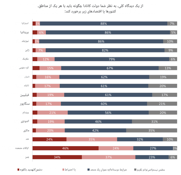 فارس/ طبق نظرسنجی اخیر، بالغ بر ۷۰ درصد از کاناداییها معتقدند که دولتشان باید آمریکا را یک «تهدید بالقوه» علیه کشور خود بهحساب بیاورد و یا در قبال آن، محتاط باشد.