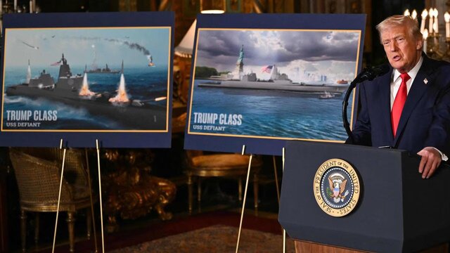 «دونالد ترامپ» رئیسجمهور آمریکا اعلام کرده ناوهای جنگی جدیدی به نام خودش ساخته میشود و آنها را «بسیار قدرتمند» توصیف کرد، با اینکه بسیاری از سلاحهای مورد نظرش هنوز وجود ندارند. او بدون توجه به روند کنگره، خواهان ساخت سریع ناوگان تازه است و ارتش را به ابزاری برای نمایش تصویر و شهرت شخصی خود تبدیل میکند که پیامدهای سیاسی و فنی آن مبهم است.